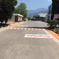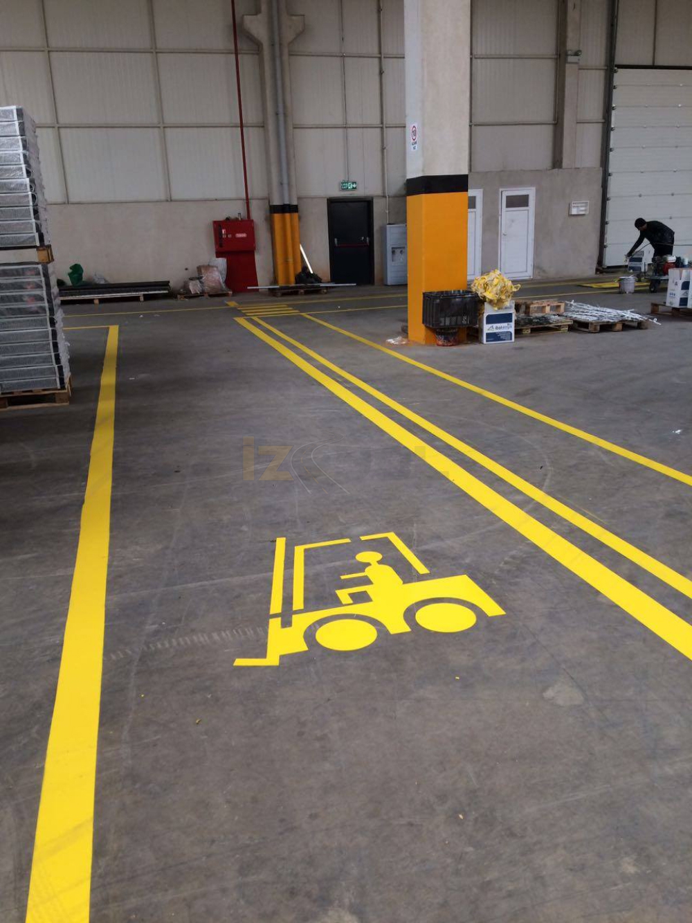 6331 Sayılı İş Sağlığı ve Güvenliği kanunu gereğince tesislere: forklift yolu, yaya yolu çizgileri, yönlendirme okları; "DUR", "30" "YAVAŞ" gibi uyarıları bildiren şablonlar ile forklift şablonu, yürüyen adam şablonu, yönlendirme oku gibi düzenleyici ve belirleyici işaretlemeler uygulanmaktadır.
